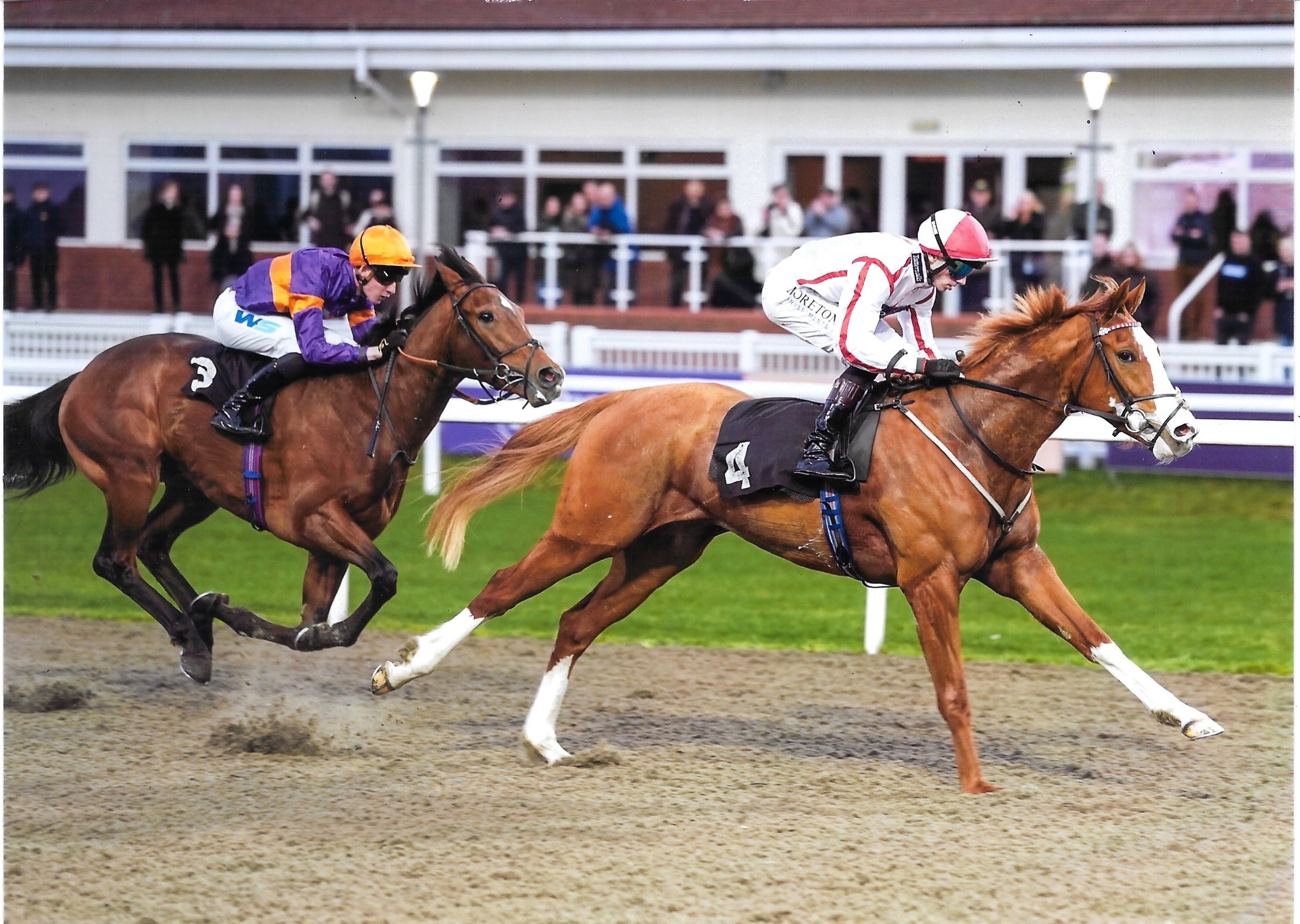 Eve Johnson Houghton was delighted Forever My Prince made it a well deserved win at Leicester on Tuesday 28th October. He was quick out the stalls and held a prominent position under Charlie Bishop, battled on well to win by half a length. Congratulations and well done to his syndicate owners, a great result!